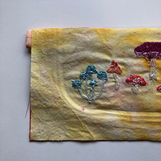 5. When finished, remove your fabric from the hoop and wash away the patterns. Lay the fabric flat to dry.